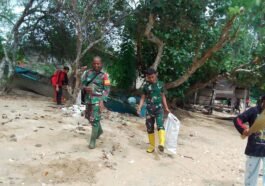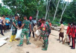 Kaimana – Satgas TMMD 127 Kodim 1804/Kaimana bekerja sama dengan anggota TNI AL melaksanakan kegiatan gotong royong pembersihan sepanjang pantai …
