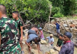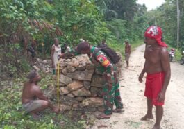 Kaimana – Satgas TMMD 127 Kodim 1804/Kaimana kembali melaksanakan kegiatan gotong royong pembangunan jembatan dengan fokus pada pemasangan pondasi di …