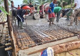 Kendari – Personel Satgas TMMD ke-127 bersama warga Kelurahan Sambuli melaksanakan pengecoran struktur utama jembatan pada Jumat (27/2). Anggota dari …