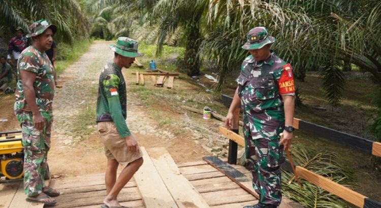 Kotawaringin Timur – Komandan Satuan Tugas (Dansatgas) TMMD Reguler ke-127 Kodim 1015/Sampit, Letkol Inf Dwi Candra Setyawan, memberikan semangat dan motivasi kepada personel Satgas yang sedang bekerja di lokasi sasaran fisik perbaikan jembatan akses perkebunan di Desa Tri Buana, Kecamatan Telaga Antang, Kabupaten Kotawaringin Timur, Minggu (08/03/2026).