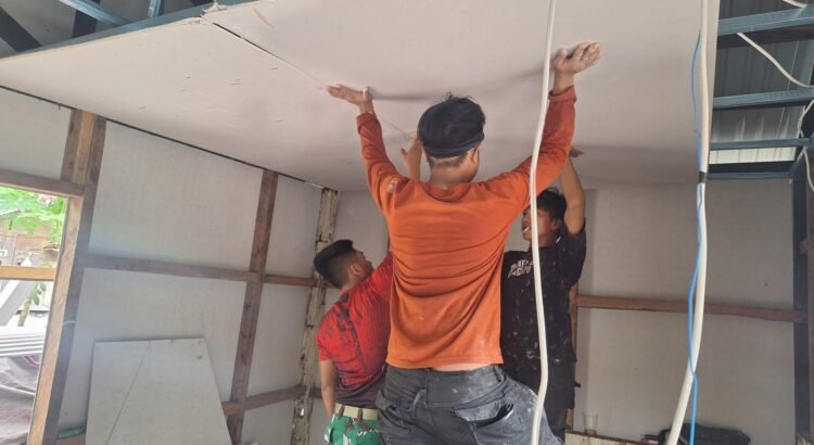 Pemasangan plafon menjadi tahapan penting dalam menyempurnakan pembangunan rumah. Selain fungsi estetika, plafon juga berperan dalam menjaga suhu ruangan dan kebersihan interior rumah. Karena itu, Satgas TMMD memastikan setiap bagian plafon terpasang dengan rapi dan aman.