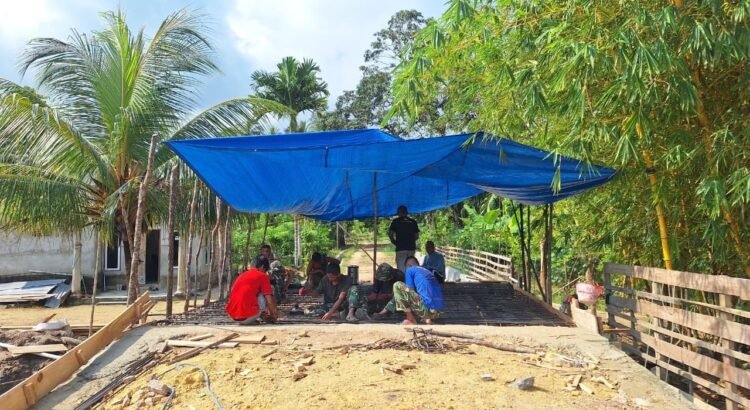 Di lokasi pembangunan, prajurit dan warga tampak bekerja berdampingan menyusun serta mengikat besi satu per satu. Proses ini memerlukan ketelitian tinggi agar struktur yang dihasilkan benar-benar kokoh.
