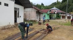 Antusiasme warga tampak jelas saat mereka turut membantu personel Satgas dalam proses penyusunan batu dan pengadukan semen untuk mempercepat penyelesaian pembangunan.
