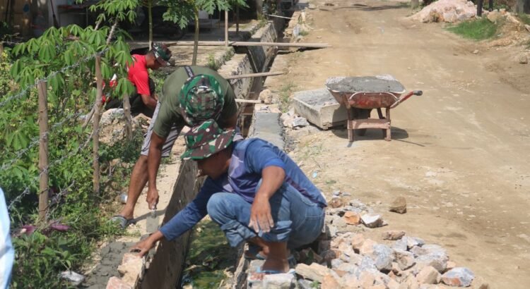 Kendari — Semangat kebersamaan terlihat dalam pengerjaan saluran drainase yang menjadi salah satu sasaran fisik program TMMD ke-127 oleh Kodim 1417/Kendari di Kelurahan Anggoeya, Sabtu (7/3).