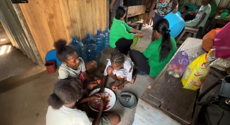 Kaimana – Dalam rangka mendukung kelancaran program Satgas TMMD 127 Kodim 1804/Kaimana, Persit Kartika Chandra Kirana Cabang XL Kodim 1804 Koorcabrem 182 PD XVIII/Kasuari kembali melaksanakan kegiatan memasak untuk makan siang non Muslim di Kampung Sisir, Senin (02/03/2026).