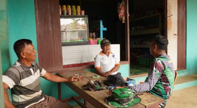 Dalam suasana santai, anggota Satgas terlihat berbincang bersama masyarakat mengenai kondisi sosial, keamanan lingkungan, hingga harapan warga terhadap keberlanjutan pembangunan desa. Interaksi tersebut berlangsung hangat dan penuh kekeluargaan.