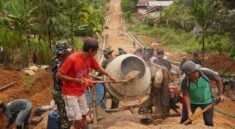 Bersama-sama, Satgas dan warga secara bergotong royong mengangkat dan mengangkut material jalan agar cepat digunakan untuk pengerjaan. Kolaborasi ini menjadi cermin semangat kebersamaan dalam membangun desa.