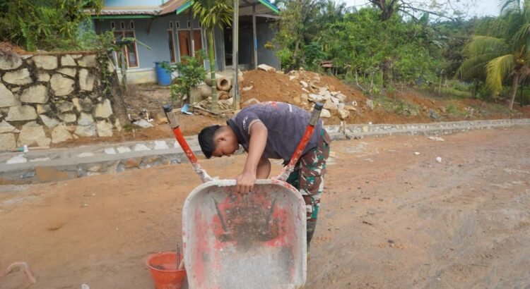 Desa Tri Buana – Keterbatasan fasilitas di wilayah sasaran TMMD tidak menyurutkan semangat Satgas dalam menyelesaikan pembangunan. Kreativitas personel terlihat saat melakukan perbaikan arco yang rusak agar tetap dapat digunakan dalam kegiatan pembangunan, Rabu (18/02/2026).