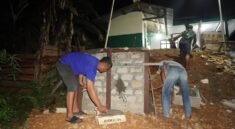 Dengan cangkul dan sekop, mereka mencampur bahan-bahan bangunan seperti pasir, semen, dan air demi memperlancar proses pengecoran. Momen ini menjadi simbol kuatnya semangat gotong royong di tengah keterbatasan alat berat.