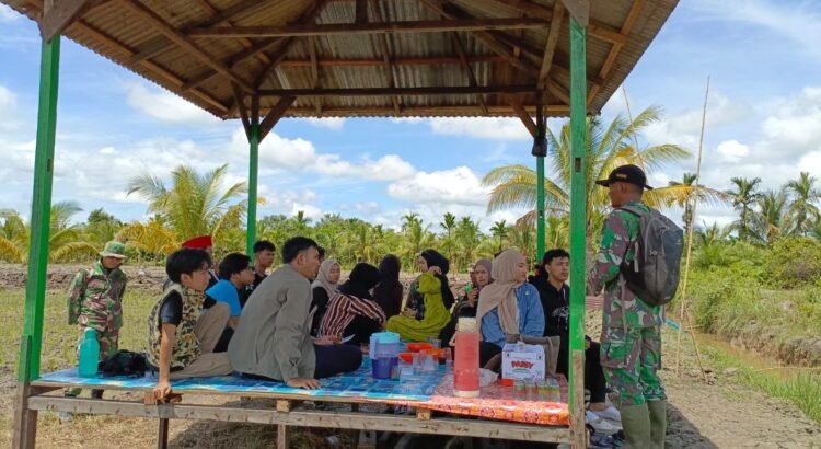 Mempawah – Perwira Seksi Teritorial (Pasiter) Kodim 1201/Mempawah Kapten Czi Kiki Gunawan memberikan sosialisasi mengenai program TNI Manunggal Membangun Desa (TMMD) Reguler ke-124 kepada Himpunan Mahasiswa Islam (HMI) di lokasi ketahanan pangan desa sungai purun kecil, sebagai bagian dari upaya mempererat sinergi antara TNI dan elemen masyarakat, khususnya kalangan mahasiswa.