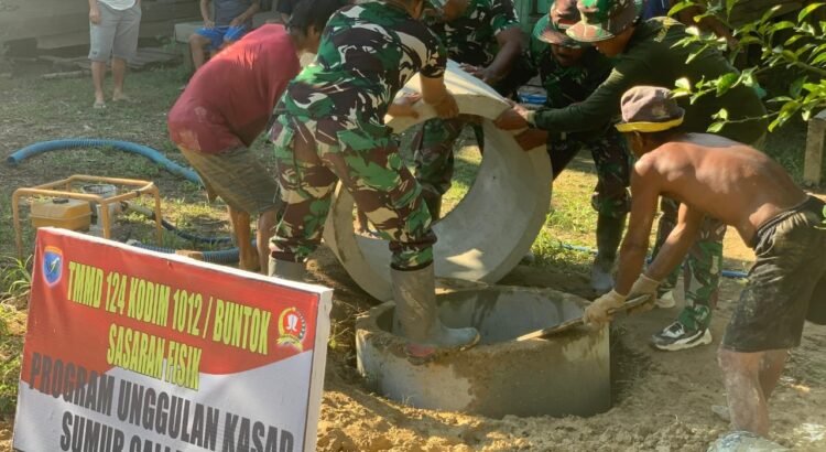 Karau Kuala, 26 Mei 2025 — Pemasangan cincin sumur gali terus dilakukan oleh Satgas TMMD Kodim 1012/Buntok di Desa Talio, Kecamatan Karau Kuala, Kabupaten Barito Selatan. Proses ini merupakan bagian dari upaya penyediaan sarana air bersih yang memadai bagi masyarakat desa.