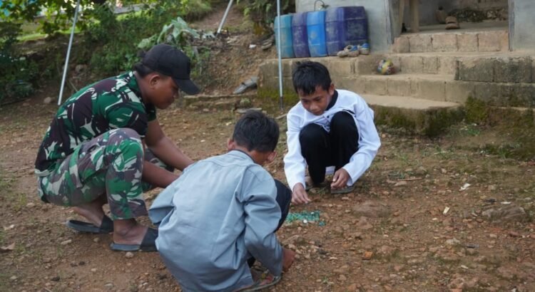 Kotawaringin Timur – Kebersamaan antara personel Satgas TMMD Reguler ke-127 dengan masyarakat kembali terlihat melalui kegiatan sederhana namun penuh makna. Para prajurit memanfaatkan waktu istirahat untuk bermain kelereng bersama anak-anak di lokasi TMMD, Senin (16/02/2026).