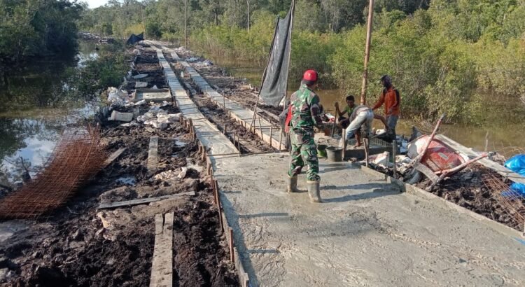Barito Selatan, 30 Mei 2025 – Satgas TMMD ke-124 Kodim 1012/Buntok melakukan pengecoran jalan penghubung Desa Talio, Kecamatan Karau Kuala, Kabupaten Barito Selatan, sebagai bagian dari rangkaian pembangunan fisik dalam program TMMD.