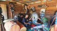 Di tengah medan yang sulit dijangkau kendaraan, para anggota Satgas TMMD dengan sigap memikul material berupa semen secara manual demi kelancaran pembangunan infrastruktur peningkatan badan jalan di Desa Talio