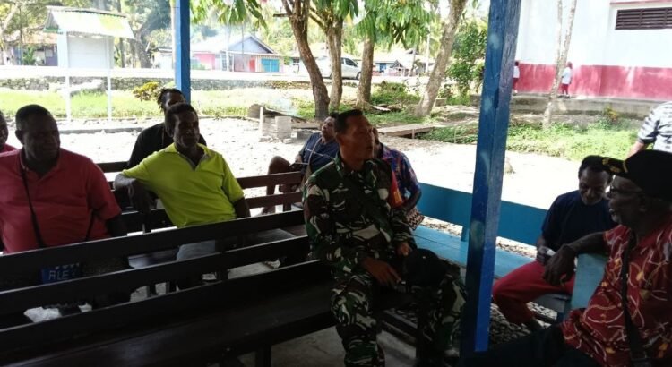 Personel Satuan Tugas (Satgas) TNI Manunggal Membangun Desa (TMMD) melaksanakan kegiatan komunikasi sosial (komsos) dengan warga sebagai bagian dari upaya mempererat hubungan antara TNI dan masyarakat. Kegiatan Komsos tersebut dilaksanakan di Kampung Pigapu, Distrik Iwaka, Kab. Mimika. Senin (26/5/2025)