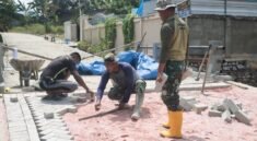Pengerjaan dilakukan secara gotong royong bersama warga, mencerminkan kemanunggalan TNI dan rakyat dalam membangun fasilitas publik yang dibutuhkan bersama.
