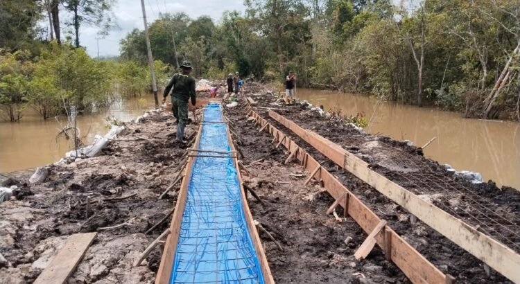 Barito Selatan, 30 Mei 2025 – Dalam rangka melanjutkan proses pembangunan infrastruktur desa, Satgas TMMD ke-124 Kodim 1012/Buntok melaksanakan pemasangan papan begisting sebagai persiapan pengecoran jalan penghubung di Desa Talio, Kecamatan Karau Kuala, Kabupaten Barito Selatan.