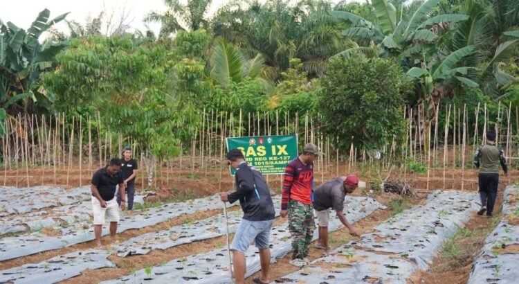 Kotawaringin Timur, 24 Februari 2026 – Program TMMD Ke-127 dari Kodim 1015/Sampit kembali menunjukkan peran aktifnya dalam mendukung ketahanan pangan desa. Kali ini, Satgas TMMD bersama warga Desa Tri Buana, Kecamatan Telaga Antang, melaksanakan penanaman berbagai jenis sayuran di lahan perkebunan milik warga, Selasa (24/02/2026).
