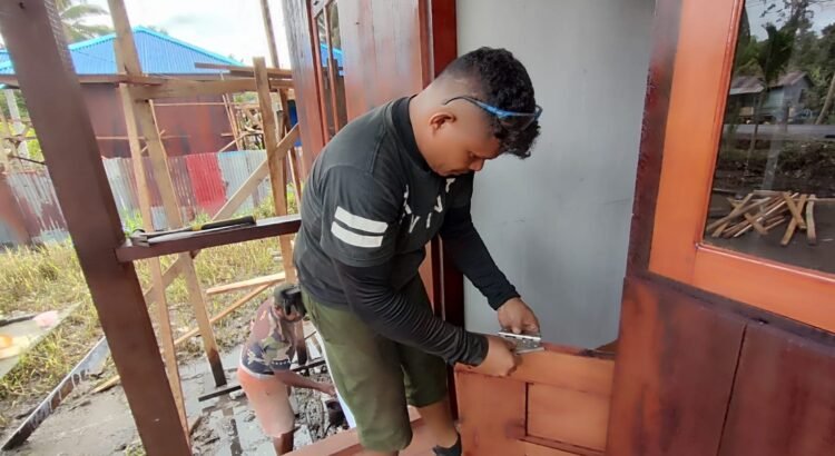 Satgas TMMD tampak terlihat memasang pintu di beberapa unit rumah yang dibangun secara gotong royong. Sertu Edwin Renyaan sebagai tukang menyampaikan bahwa kegiatan ini merupakan bagian dari komitmen TNI dalam mempercepat pembangunan infrastruktur di wilayah.