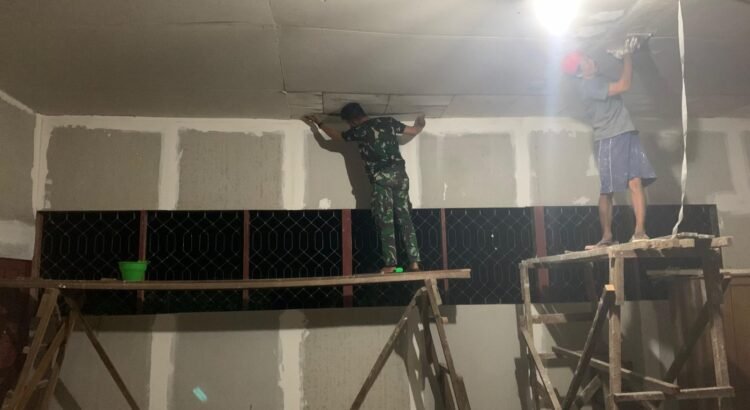 Karau Kuala, Barsel – Pengerjaan rehab ruang kelas 1 SDN 2 Karau Kuala, Desa Talio, Kecamatan Karau Kuala, terus dilakukan hingga malam hari. Satgas TMMD Reguler Ke-124 Kodim 1012/Buntok bersama warga setempat bekerja lembur untuk mempercepat perbaikan fasilitas pendidikan yang sangat dibutuhkan anak-anak.