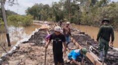 Barito Selatan, 31 Mei 2025 — Dalam rangka pembangunan jalan Desa Talio, Kecamatan Karau Kuala, Kabupaten Barito Selatan, Satgas TMMD ke-124 Kodim 1012/Buntok tengah memasang geotextile atau geotex sebagai lapisan penyangga jalan.