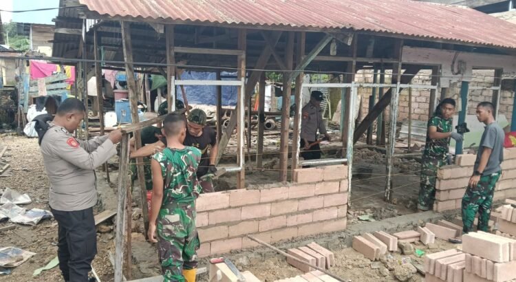 Kendari – Sinergi antara TNI dan Polri kembali terlihat nyata dalam pengerjaan Rehab RTLH TMMD 127 Kodim 1417/Kendari, Kamis (19/2).