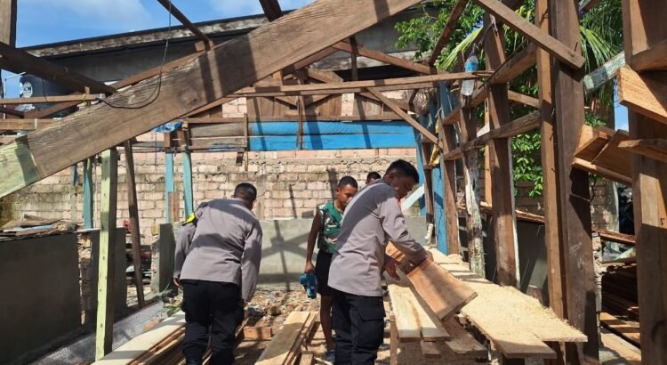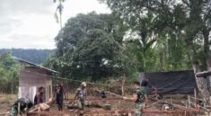 KENDARI – Kolaborasi kuat antara TNI dan Polri terlihat nyata di Kelurahan Petoaha, saat personel Satgas TMMD ke-127 dari Kodim 1417/Kendari bersama Bhabinkamtibmas bahu-membahu membangun rumah warga, Senin (2/3).