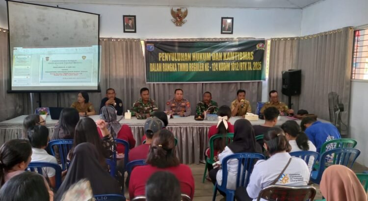 Barito Selatan – Satgas TNI Manunggal Membangun Desa (TMMD) Reguler ke-124 Kodim 1012/Buntok menunjukkan kepedulian pada aspek sosial masyarakat melalui kegiatan penyuluhan hukum dan Kamtibmas. Kegiatan ini dilaksanakan di Balai Desa Talio, Kecamatan Karau Kuala, Selasa (27/5/2025), bekerja sama dengan Polres Barito Selatan.
